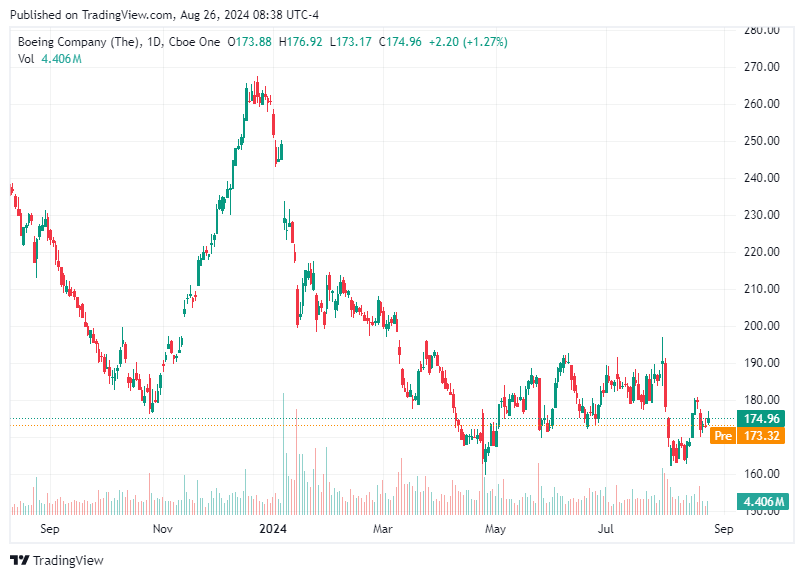 Boeing has faced its share of market pressures, compounded by a miss in Q2 forecasts. However, the recent appointment of a new CEO might indicate a strategic pivot, sparking interest among investors betting on a turnaround. The stock's resilience, despite setbacks, could attract those looking for a long-term recovery play. Short-term traders should watch for an upside break above $173.86, which could suggest renewed investor confidence. A downside breach below $173.20 might warrant caution.