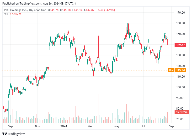 PDD Holdings has delivered a mixed financial performance, with recent quarterly results showing a miss on revenue expectations but a beat on bottom-line estimates. This could suggest a robust underlying financial health despite market challenges. Such mixed signals often lead to stock volatility, offering potential opportunities for astute investors. In the short term, keep an eye on the upside level of $121.43, as surpassing this point could indicate a bullish trend. Conversely, a dip below $115.25 might signal a bearish movement.