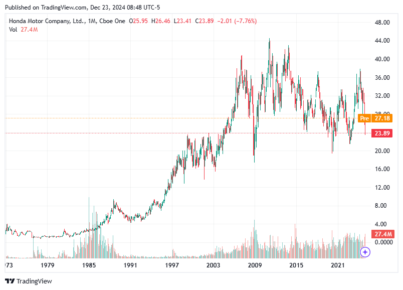 Reason to Watch: The merger has the potential to expand Honda’s influence, especially as both companies shift focus toward electric vehicles. Investors who believe in the EV market’s growth should keep a close watch on short-term price movements: