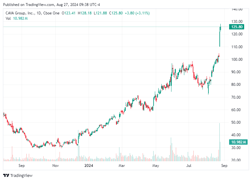CAVA is on a growth trajectory, having raised its full-year guidance with an optimistic forecast for same-restaurant sales growth between 8.5% to 9.5%. The company surpassed expectations with striking second-quarter growth and profitability. While recent insider stock sales led to a temporary dip, the overall momentum remains strong. For short-term trading, watch for potential upside above $118.00 and downside support around $113.98.