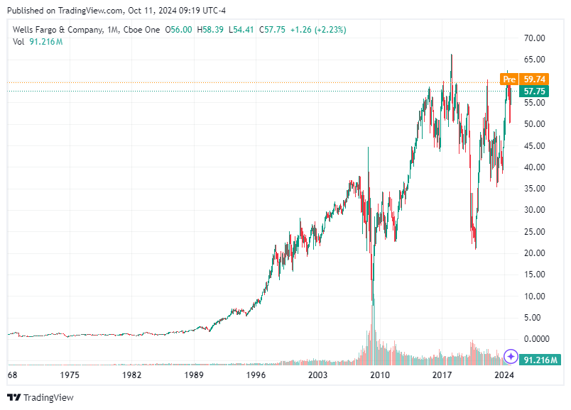 Wells Fargo reported a strong third-quarter performance, exceeding profit expectations thanks to robust results in wealth management and reduced credit loss provisions. This positive outcome led to a 3.5% increase in the bank's stock price. However, Wells Fargo projected a 9% decline in 2024 interest income due to recent Federal Reserve rate cuts, which may affect future earnings. For short-term traders, keep an eye on levels above $60.91 for potential upside, and $57.00 for possible downside movements.