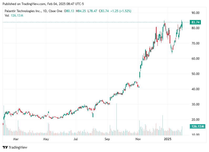 Palantir experienced explosive growth with Q4 2024 revenue up 36%, driven by its dominance in AI-driven solutions.