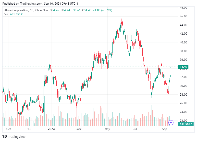 Alcoa has made headlines with its strategic decision to sell its stake in a Saudi Arabian joint venture for $1.1 billion. This move is expected to have a positive impact on Alcoa's financial health and stock performance. Short-term traders should observe levels above $33.92 for an upside and below $32.96 for a downside.