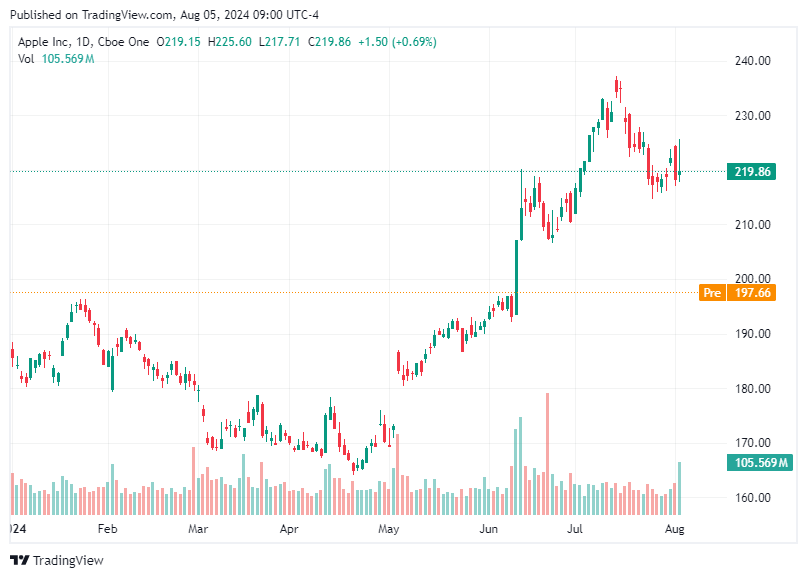 Broader Market Impact: As a major tech stock, Apple has been impacted by the broader sell-off in technology shares, with declines exceeding 5%. Such movements often draw traders seeking to capitalize on potential rebounds.