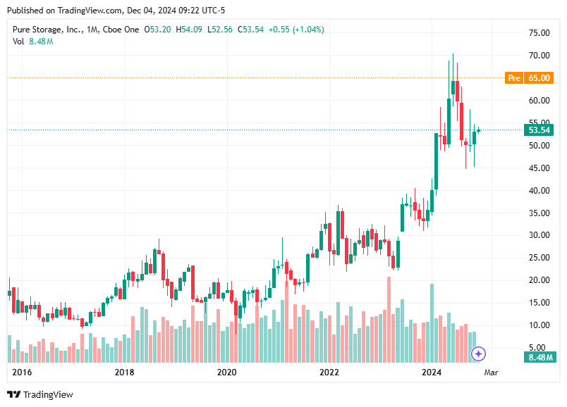 Pure Storage is lighting up the sector! Its stock surged by 21% following a stellar earnings report and news of a big win in the hyperscale arena. The company exceeded expectations in both Q3 earnings and sales, showcasing the strength of its enterprise data storage solutions. For those tracking breakout points, focus on upside above $67.00 and downside below $63.88 as key levels.