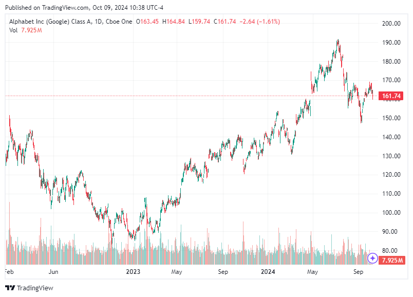Alphabet's stock has shown remarkable resilience, experiencing only a brief pullback from its record high. The company remains a key focus for investors due to its advancements in artificial intelligence, which continue to position it as a leader in this fast-evolving sector. Analysts highlight these AI innovations as vital growth drivers, reinforcing Alphabet's status as a premier tech stock with substantial long-term potential. Key levels to monitor in the short term include upside above $165.85 and downside below $163.38.