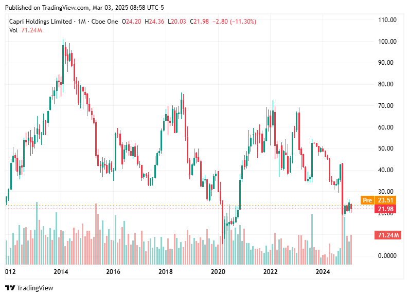 Luxury Market Demand: Parent company of luxury brands like Michael Kors and Versace, Capri continues to benefit from strong demand in the luxury goods sector.