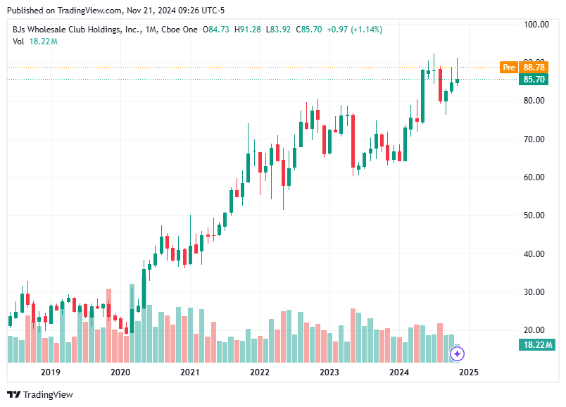 Strong Financial Performance: BJ’s is flexing its muscles with a strong third-quarter showing. An adjusted EPS of $1.18 beat market estimates, and digitally enabled sales saw a remarkable 30% growth.