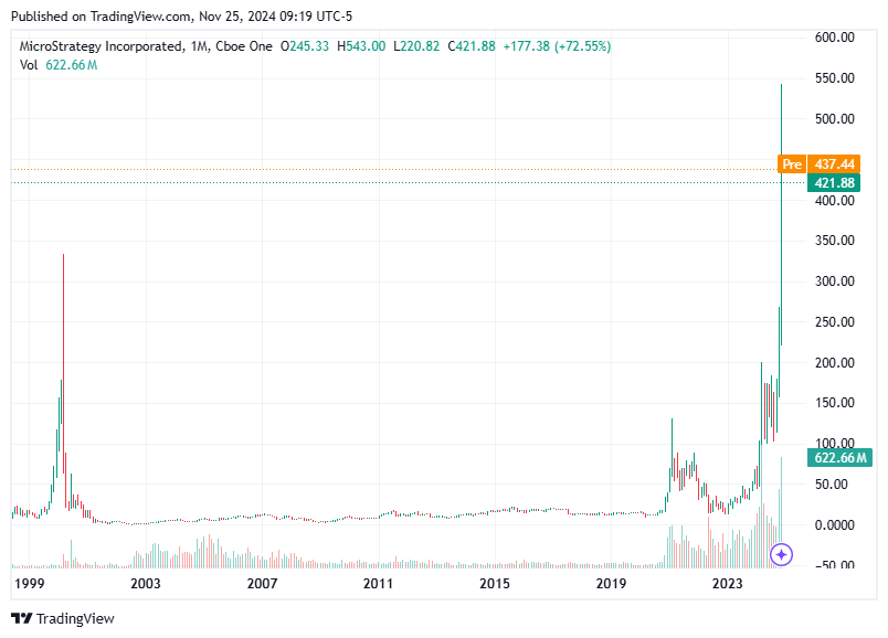 Stock Surge: MicroStrategy shares have soared, rising 24.7% in recent sessions.