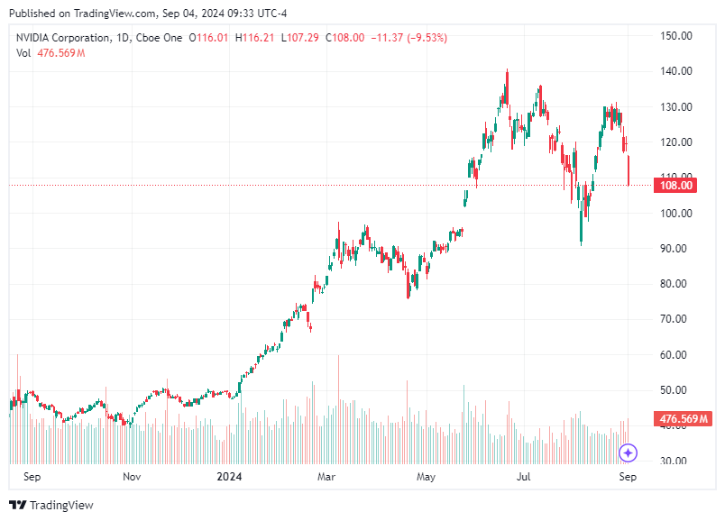 Nvidia has recently experienced a significant downturn due to a record sell-off amid concerns over its valuation. Despite this volatility, Nvidia continues to be a leader in the AI and semiconductor sectors. For investors with a long-term perspective, this dip might be a strategic entry point. In the short term, keep an eye on critical price levels: potential upside is seen above $107.09, while a downside risk exists below $106.09.