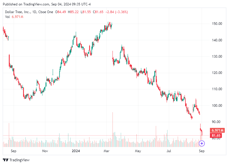 Dollar Tree faces economic headwinds, having recently adjusted its full-year profit target downward. Despite these challenges, it maintains its position as a major entity in the discount retail market. This period of difficulty could provide a lower entry point for investors anticipating a rebound. In the short term, observe price levels closely, with potential gains above $73.74 and risks below $71.95.
