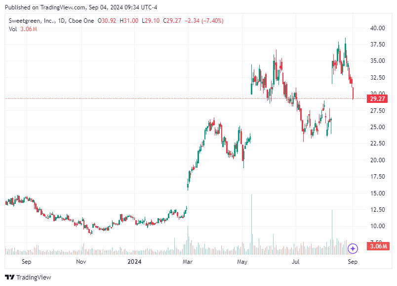 Sweetgreen has garnered fresh investor interest after receiving an upgrade from TD Cowen, which shifted its rating from "hold" to "buy." The upgrade is attributed to Sweetgreen's innovation and growth potential, making it a compelling choice for those interested in the evolving food and restaurant industry. Key price levels to watch include an upside above $30.16 and a downside below $29.27.