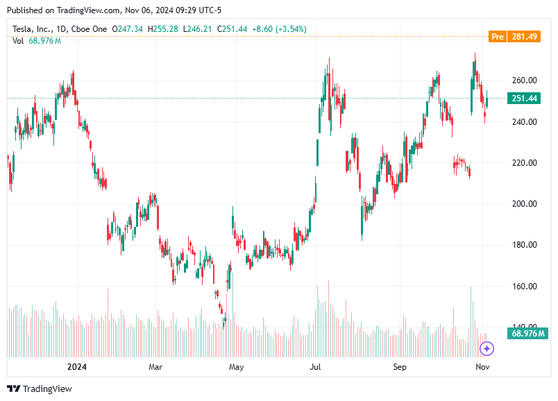 Tesla's shares have seen a remarkable surge following Donald Trump's victory in the 2024 U.S. presidential election. The market is buzzing with anticipation as a Trump presidency is expected to potentially favor Tesla, possibly propelling its market cap towards the $1 trillion mark. This optimism is largely fueled by potential policy advantages and CEO Elon Musk's well-known rapport with Trump, which could create favorable trade conditions globally.