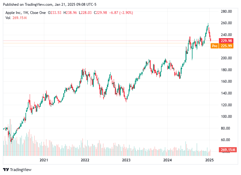 Apple has faced a rough start to 2025, with the stock dropping 8.2% in January due to underwhelming iPhone sales and slower-than-expected growth in AI-related ventures. Analysts have downgraded the stock, but its commanding market cap and potential for recovery ensure it remains a pivotal stock to watch.