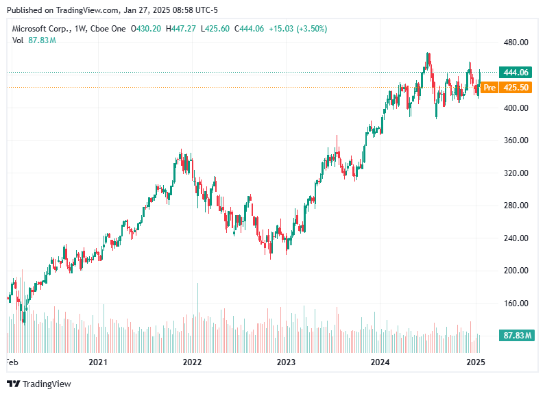 Microsoft's dominance in productivity software, enterprise cloud services, and its AI ambitions position it as a strong candidate for steady, long-term growth.