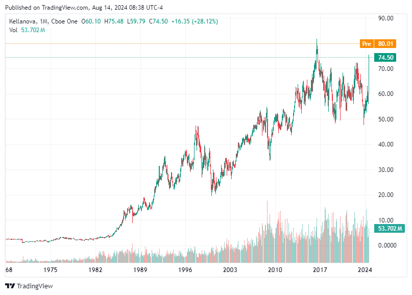 Premium Deal: Mars is offering $83.50 per share in an all-cash deal, representing a 33% premium to Kellanova's recent closing price. This makes Kellanova an attractive short-term investment.