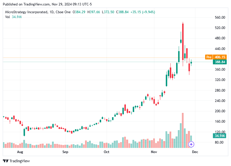 Over the past week, MicroStrategy registered an impressive $136 billion in trading volume, showing an intense focus from investors. Bitcoin, the cryptocurrency with which MicroStrategy’s identity is increasingly intertwined, has been gaining momentum, helping to propel $MSTR’s valuation. Most significantly, Bitcoin's trajectory toward the much-anticipated milestone of $100,000 per coin has fueled speculation about further upside for MicroStrategy’s stock.