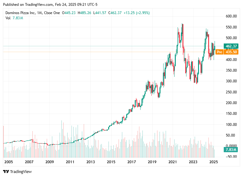 Recent Performance: Domino's fell short of analyst expectations for U.S. same-store sales in Q4 2024, posting a modest 0.4% growth versus the anticipated 1.63%.