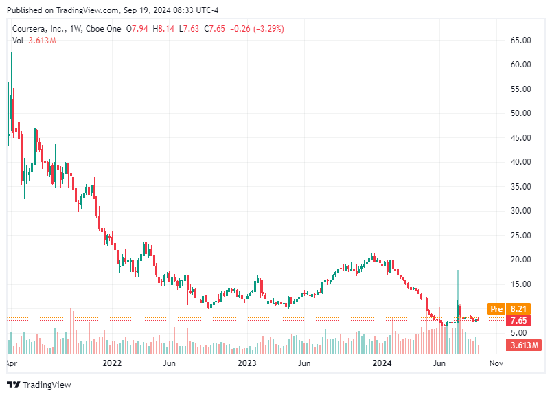In the realm of online education, Coursera is thriving, fueled by the ongoing demand for remote learning and upskilling. New partnerships, course offerings, or earnings reports could propel this stock further. Track its short-term performance with levels to watch: an upside above $8.38 and a downside below $7.92.