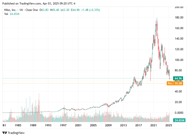 Nike faced challenges this week as new U.S. tariffs on Asian manufacturing hubs, including Vietnam and Indonesia, led to an 8% drop in its stock price. These regions are critical to Nike’s production, making the tariffs a significant short-term hurdle.
