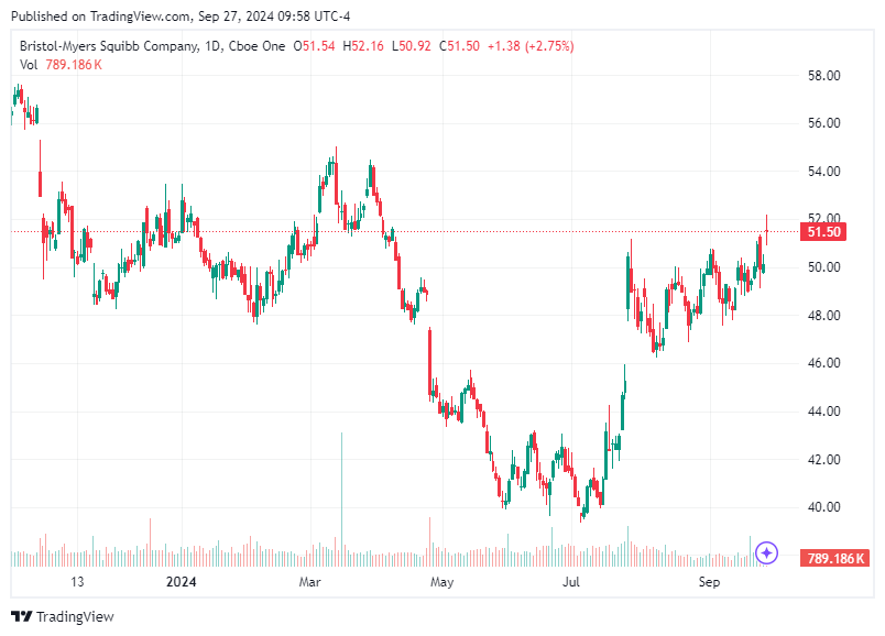 Bristol Myers Squibb is gaining significant traction following the FDA approval of its new schizophrenia drug. This approval could pave the way for enhanced revenue streams and bolster its competitive position in the pharmaceutical market. As anticipation builds for the company’s third-quarter results, investors are focusing on potential insights into its financial health and growth trajectory. For those tracking Bristol Myers Squibb, keep an eye on the short-term trading levels: an upside above $53.47 and a downside below $52.00.