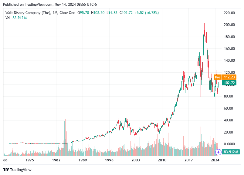 Disney has delivered an impressive fiscal fourth-quarter performance, surpassing analyst expectations with revenue reaching $22.6 billion. The company's streaming segment has turned profitable, fueling optimism, alongside successful box office hits like "Deadpool & Wolverine" boosting its entertainment revenues. With investor confidence riding high, Disney's stock has seen significant gains. Keep an eye on short-term movement, with potential upside above $112.71 and downside below $103.00.