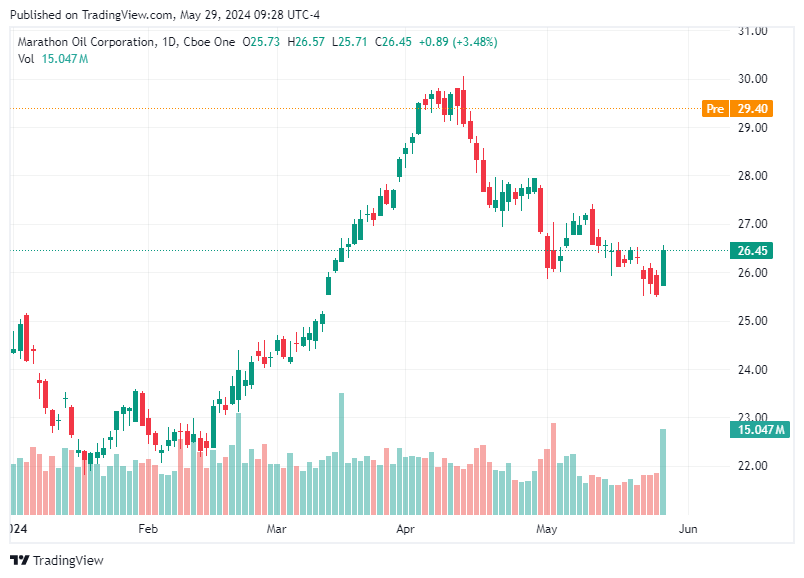 2. Industry Position: Marathon Oil remains a key player in the oil and gas sector. The acquisition by ConocoPhillips could enhance operational efficiencies, expand resource bases, and strengthen market positioning. Levels to watch: