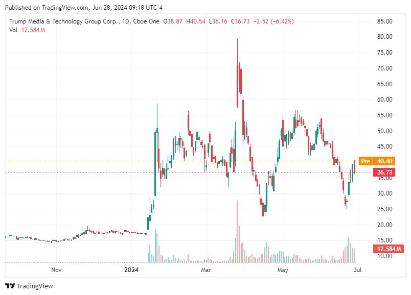 Public Sentiment: Political debates can significantly influence public perception of media entities affiliated with the candidates. Positive coverage or sentiment towards Trump during the debate could lead to increased interest in DJT's platforms. Levels to watch out for: upside above $40.93, and downside below $38.39.