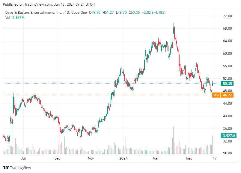 Dave & Buster’s is another stock to keep an eye on this week, driven by various factors. As global economies continue to reopen and consumer confidence grows, increased foot traffic and sales could positively impact its stock. The upcoming earnings report is expected to provide insights into the company’s post-pandemic recovery, with better-than-expected results potentially boosting the stock. Announcements related to opening new locations or expanding into new markets could generate positive investor sentiment. Moreover, trends in consumer discretionary spending, especially in entertainment and dining, are key indicators to watch. Special promotions, marketing campaigns, or new entertainment offerings can drive short-term spikes in customer visits and sales, reflecting positively on the stock. Critical levels to observe include an upside above $45.80 and a downside below $44.28.