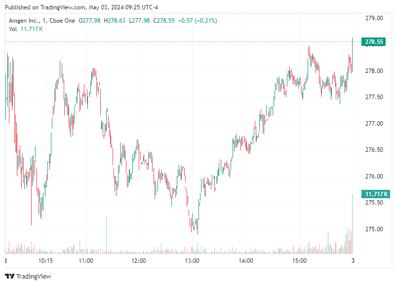 Boost to DJIA: Amgen's performance, particularly a 6% rise in premarket trading, suggests it could significantly influence the Dow Jones Industrial Average (DJIA), potentially more than Apple.
