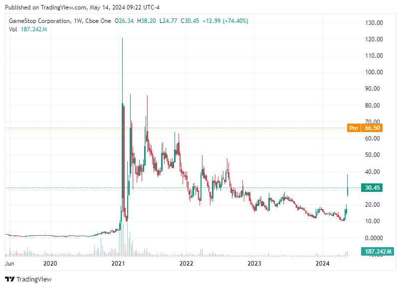 Meme Stock Resurgence: The wind is changing direction with a significant premarket surge, hinting at a renewed frenzy around meme stocks. GameStop, at the heart of this whirlwind, shows promising speculative engagement.