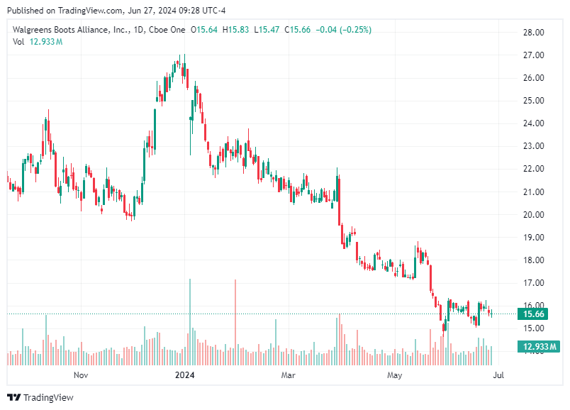 Guidance Cut: Walgreens recently cut its fiscal 2024 guidance due to worse-than-expected retail performance, leading to a stock decline of 4.8%. This adjustment in expectations could signal potential volatility and trading opportunities.